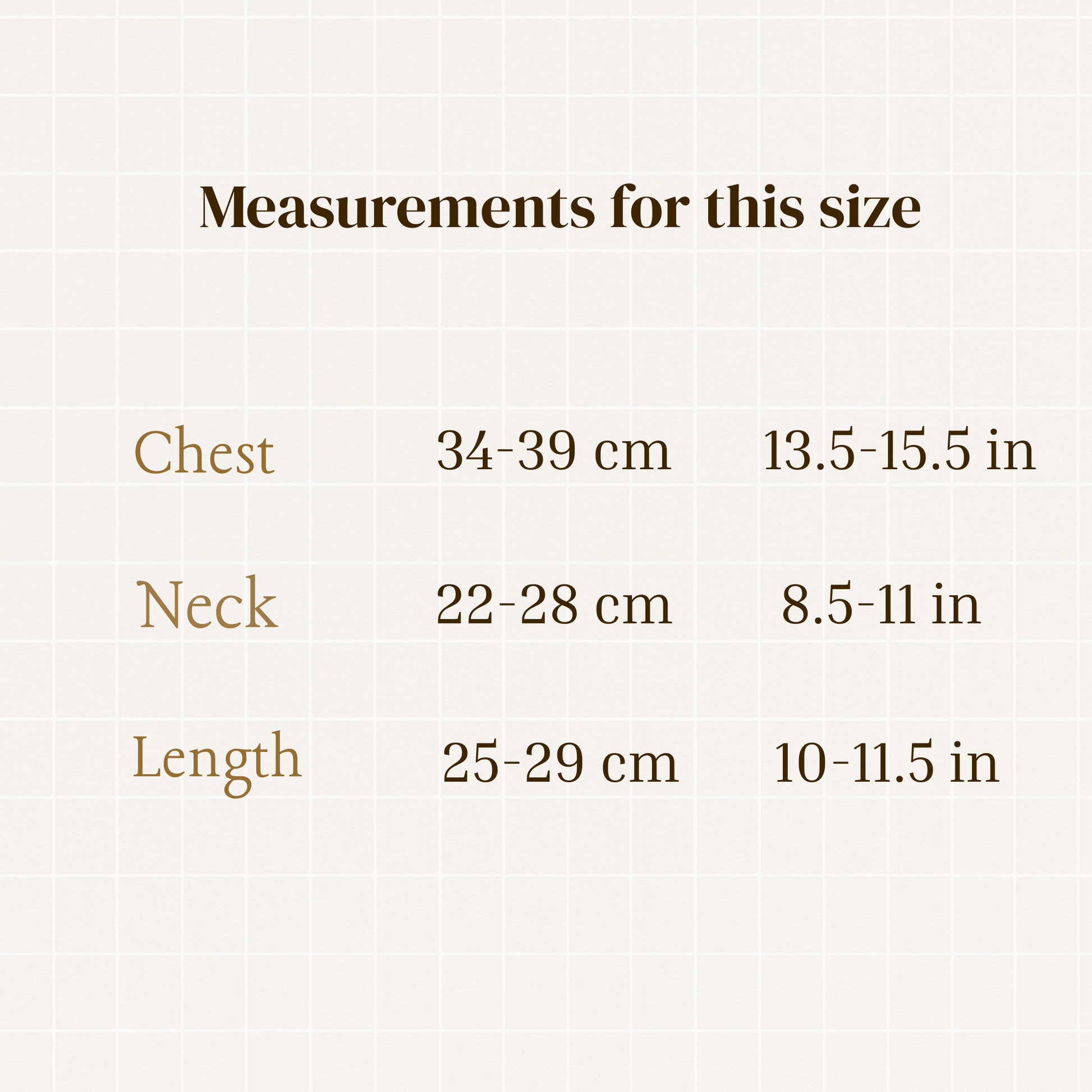 Chest 37 cm • Neck 25 cm • Back Length 26 cm