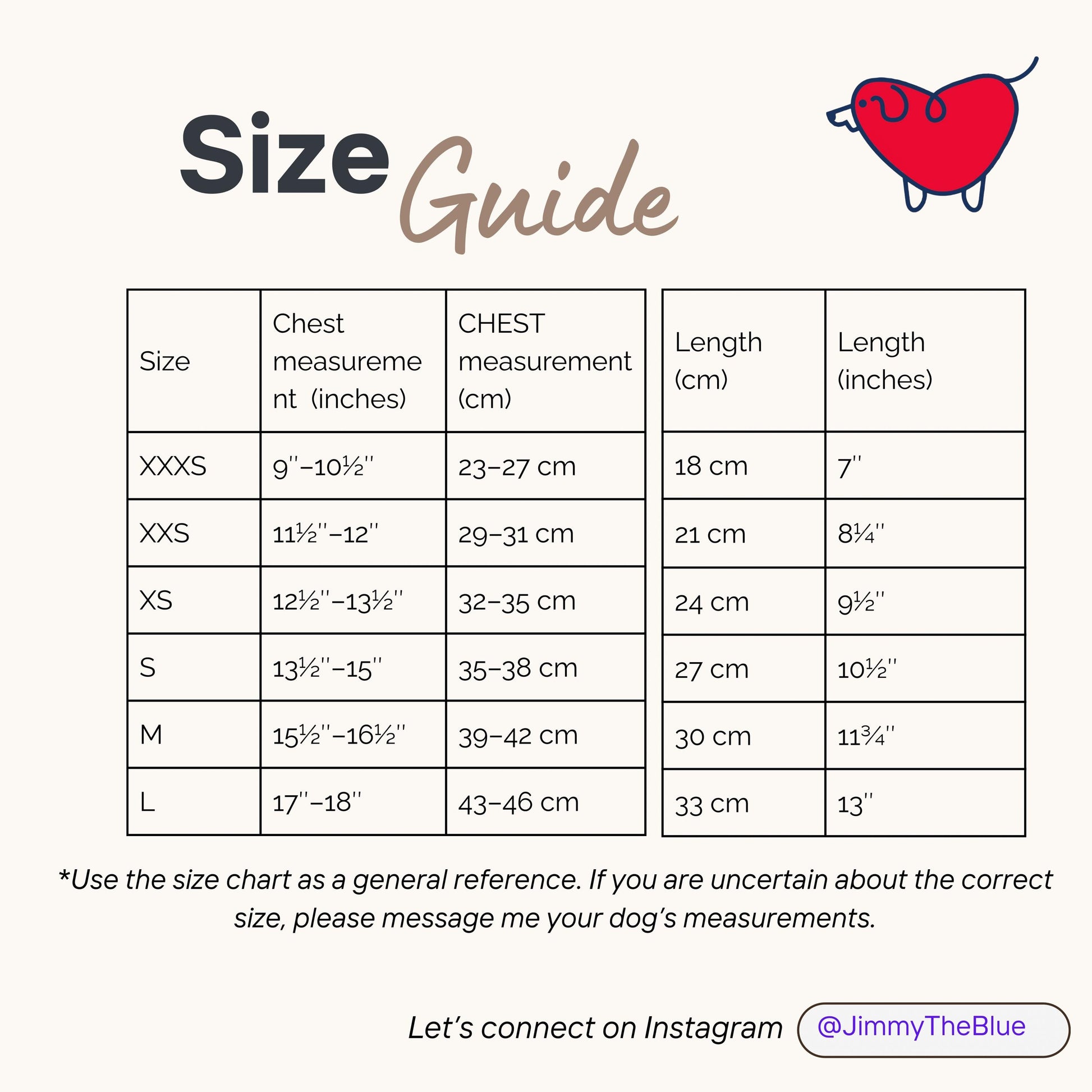 Add your measurements and any preferences in the note tab as you add the item to your cart, or email tinycoats@yahoo.com after ordering. Together we'll design the perfect outfit for your pup.