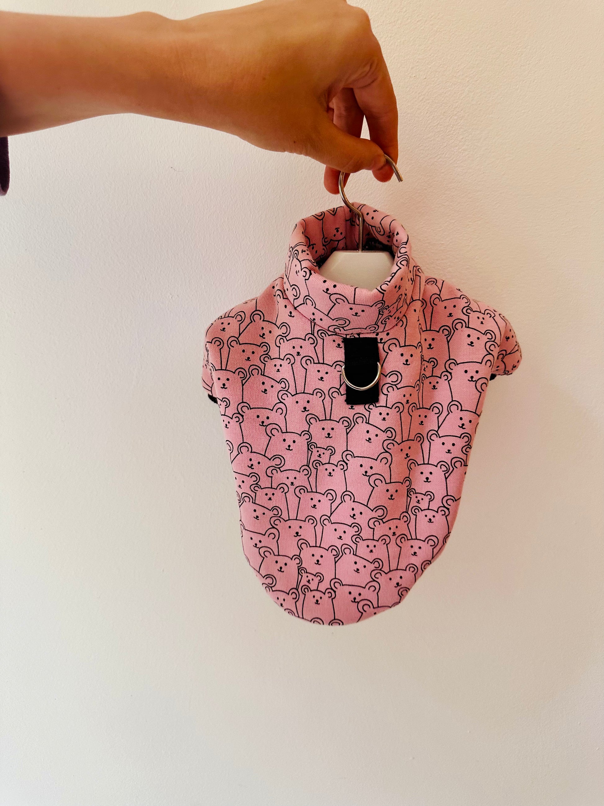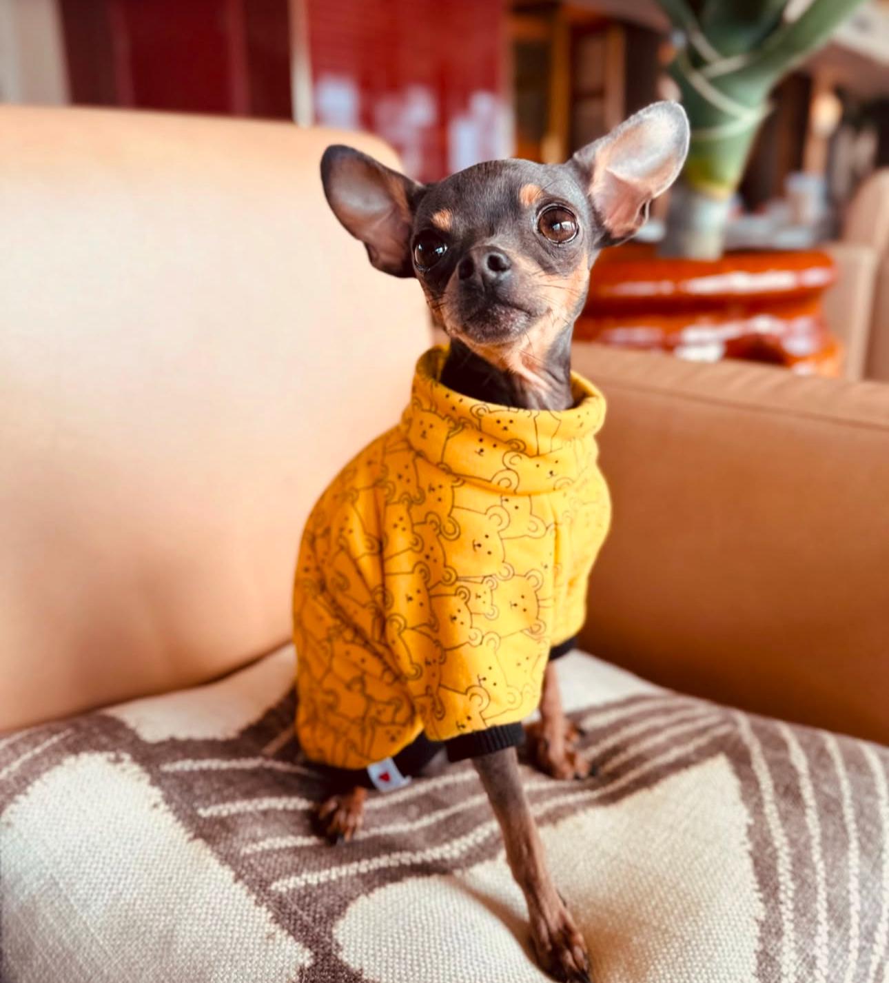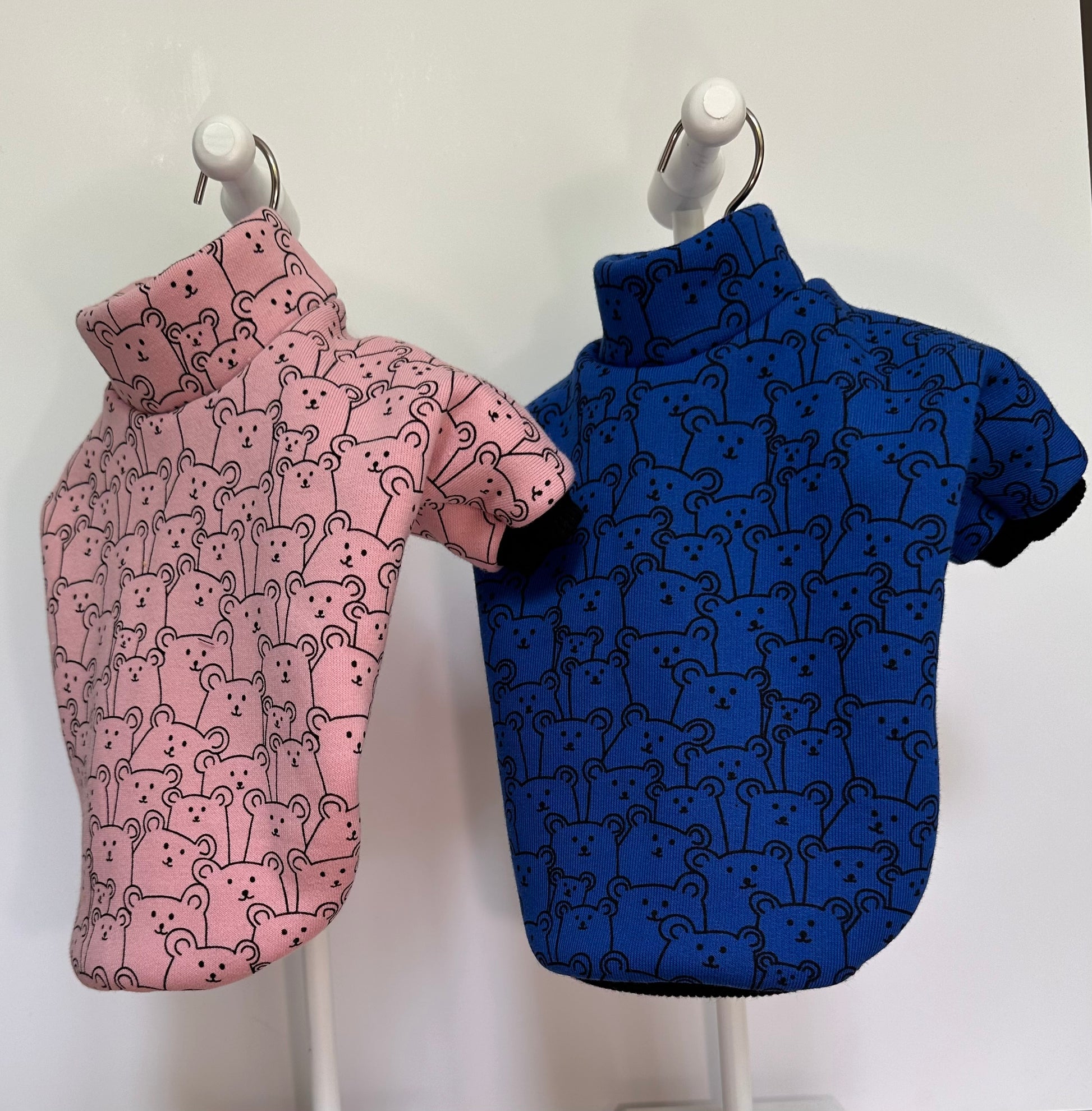 This turtleneck pullover is handmade from 100% cotton fleeceback sweatshirt fabric - warm, breathable, and comfortable for lounging or layering. Each piece is made to measure and shaped individually to your dog’s proportions.
