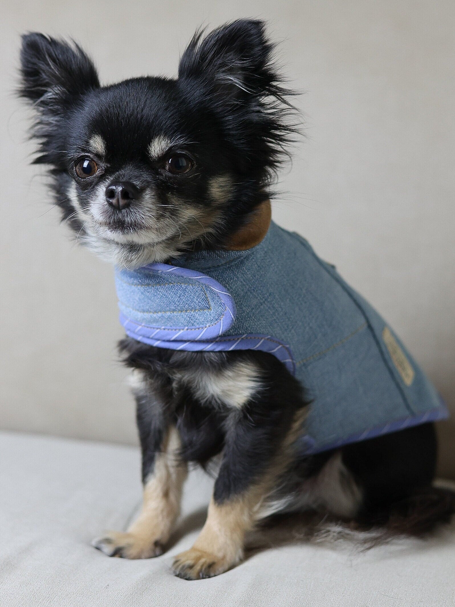 Crafted from upcycled Levi’s denim and lined with soft fleece or breathable cotton, this jacket is handmade for dogs who value both comfort and style. It’s especially ideal for pups who dislike clothes - no squeezing through sleeves or over the head. Just effortless on-and-off with adjustable straps and no movement restrictions.
