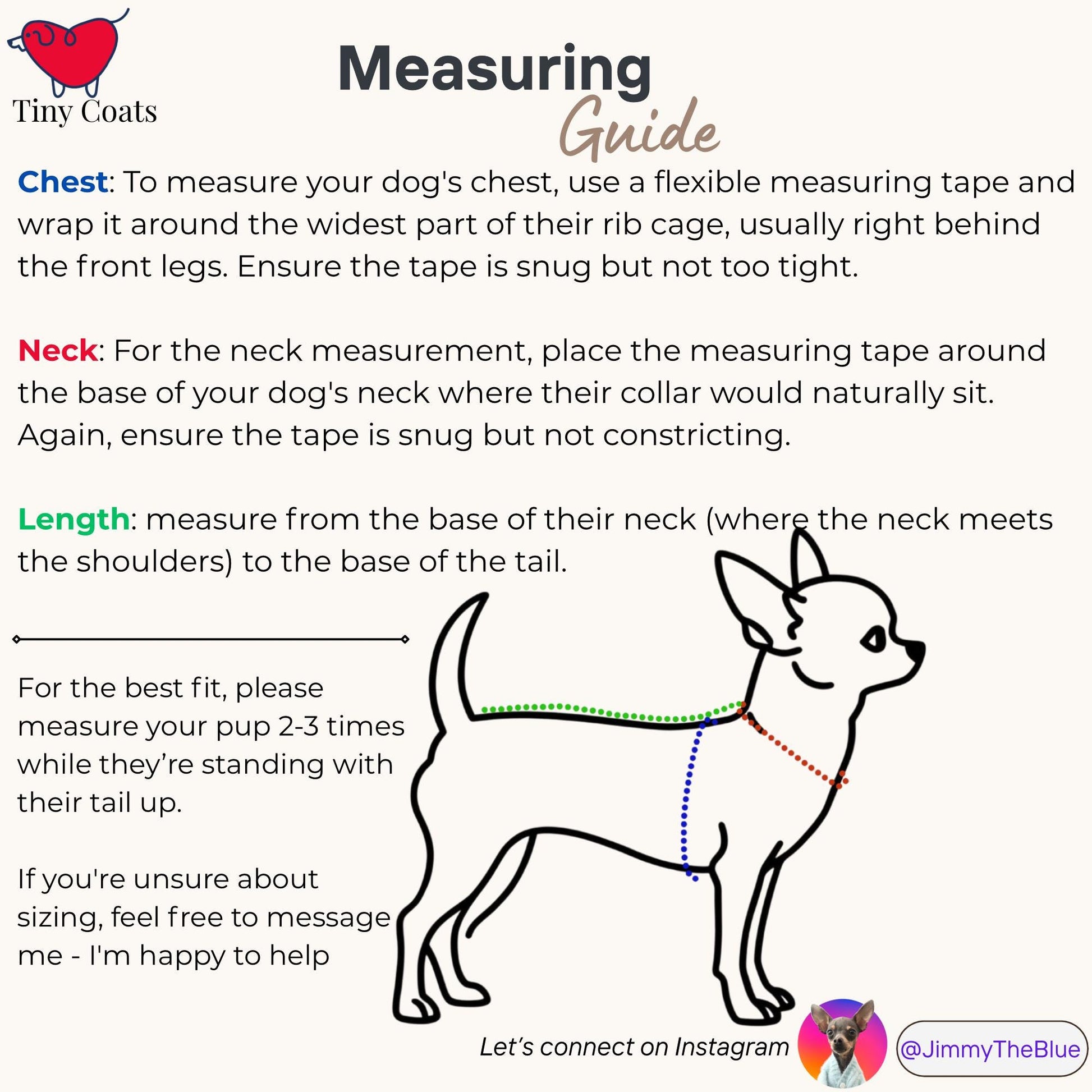 A tiny thick cotton jacket for teacup pups. Designed specifically for miniature breeds such as Chihuahuas, Yorkies, Pomeranians, Russian Toys, and other teacup-sized dogs around 1.5–2.5 lb (0.7–1.1 kg).