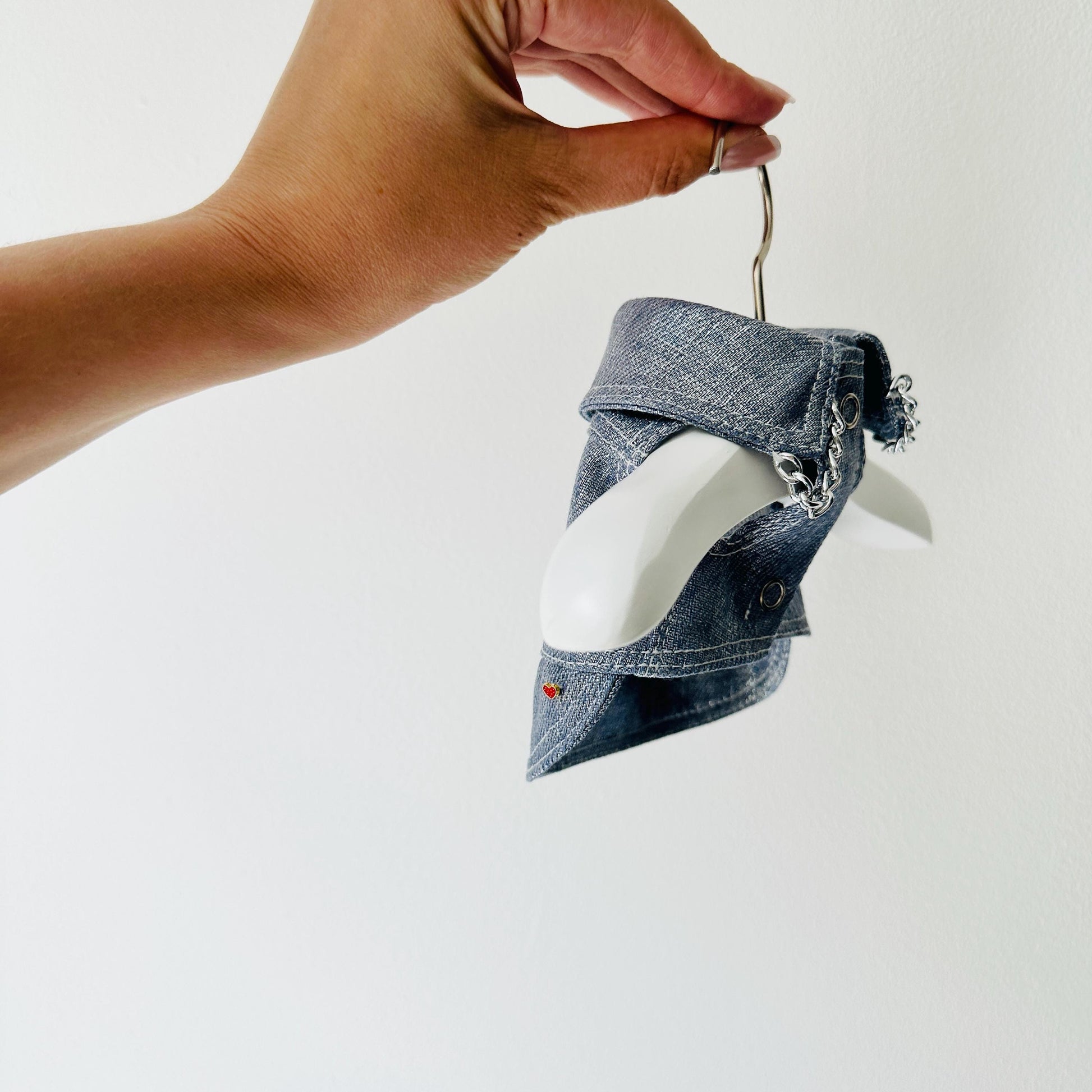 This XXXS vest is made from soft, high-quality Italian metallic denim and finished with a metal D-ring for light leash attachment. Designed specifically for miniature breeds such as Chihuahuas, Yorkies, Pomeranians, Russian Toys, and other teacup-sized dogs around 1.5–2.5 lb (0.7–1.1 kg).